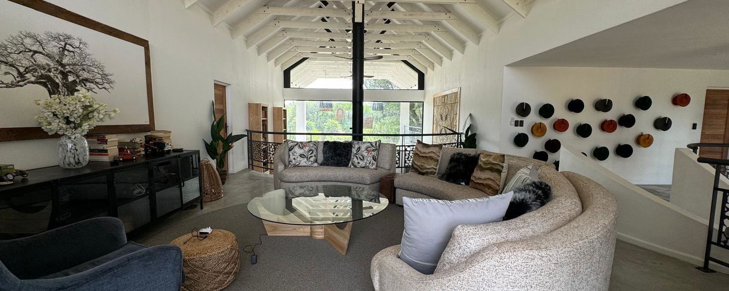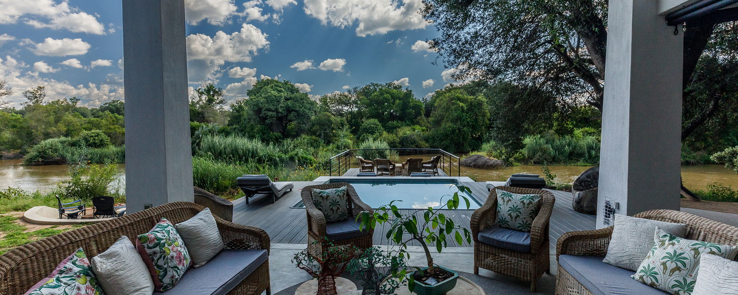 Accommodating up to ten guests, the lodge comprises a three-bedroom, Farmhouse-style main residence providing airy, spacious rooms and living areas that flow onto welcoming outdoor verandas and balconies. On either side are two separate one-bedroom, open plan suites that are linked to the main house by walkways. All rooms offer magnificent panoramic vistas of the Limpopo river and the African bush.